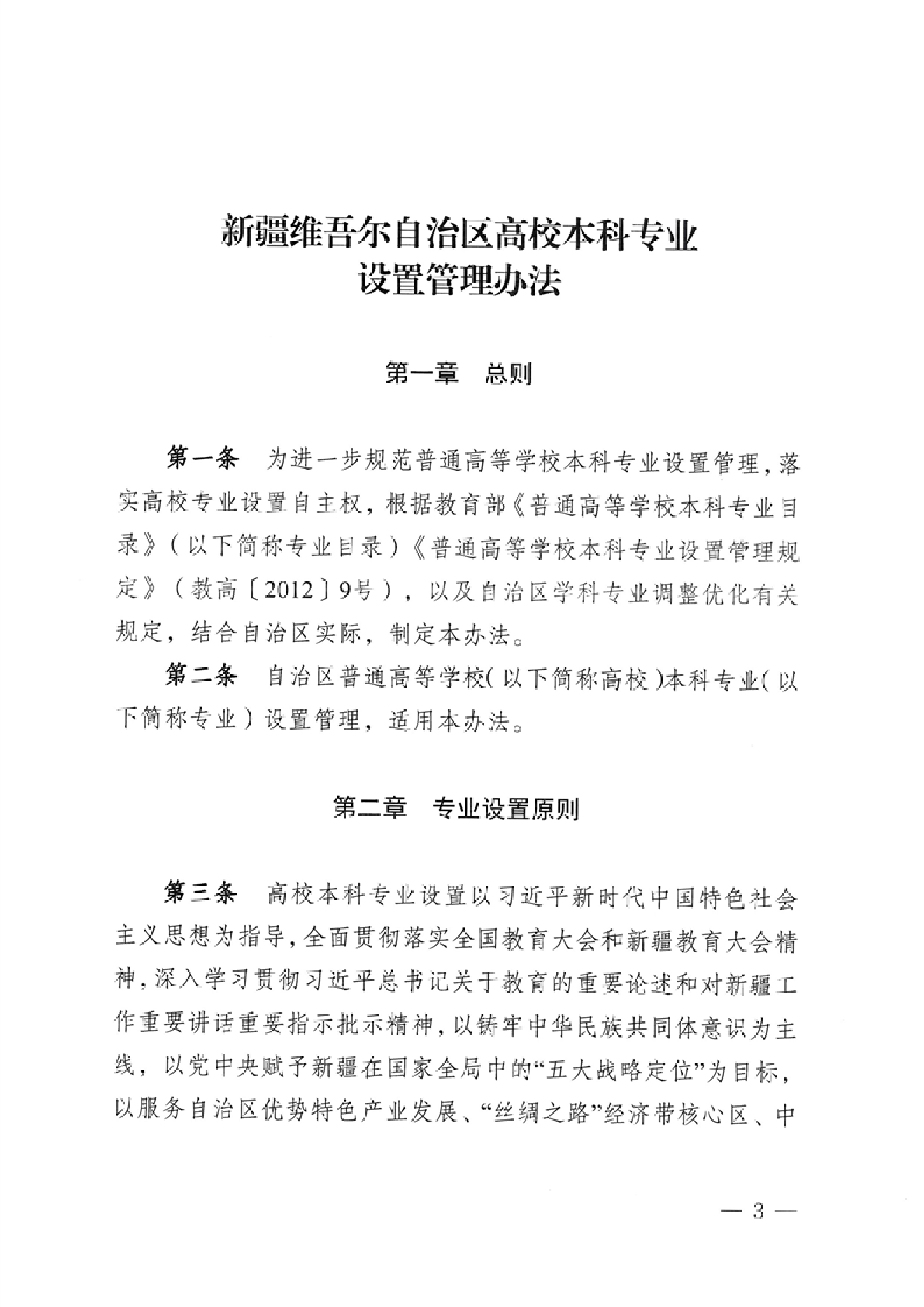 2025年自治区教育厅关于印发《新疆维吾尔自治区高校本科专业设置管理办法》的通知